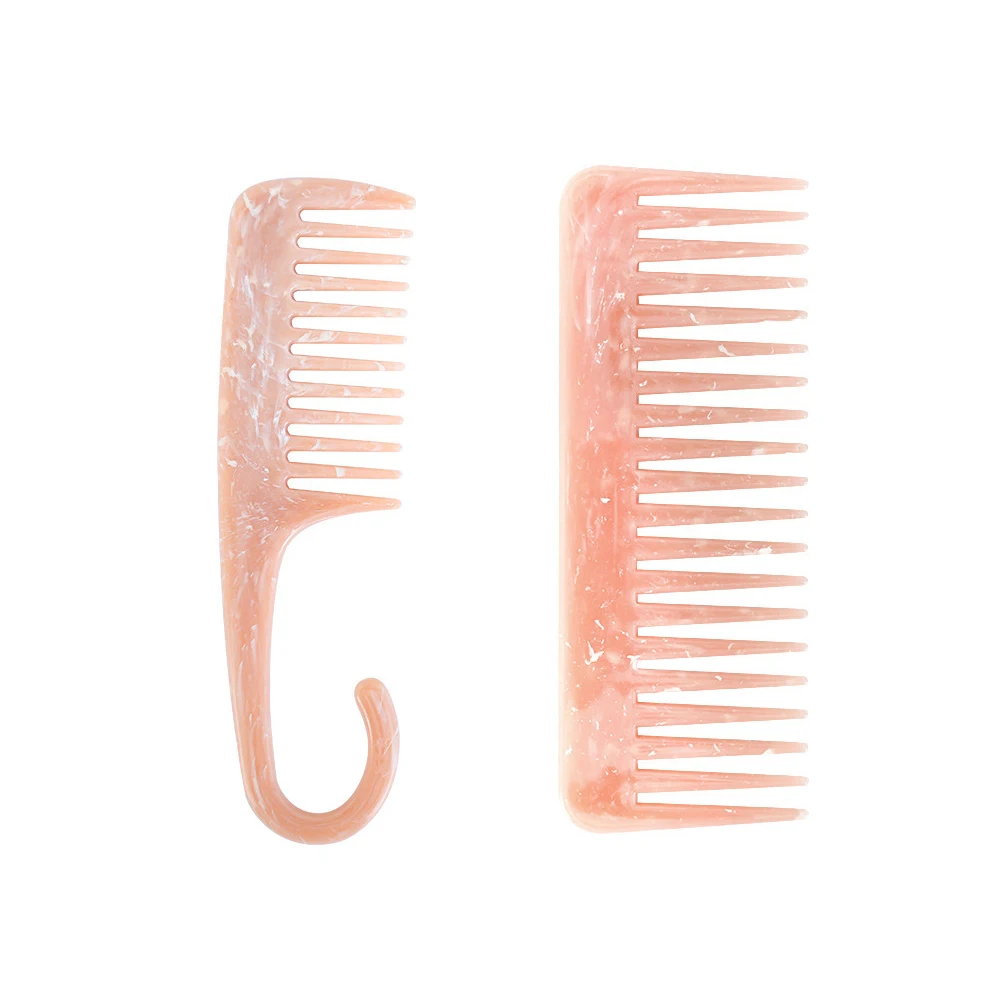 Cute Pink Hair Comb Marble Big Wide Tooth Comb Simple Texture Hairdressing Hairbrush Female Anti-static Detangler Brush Set