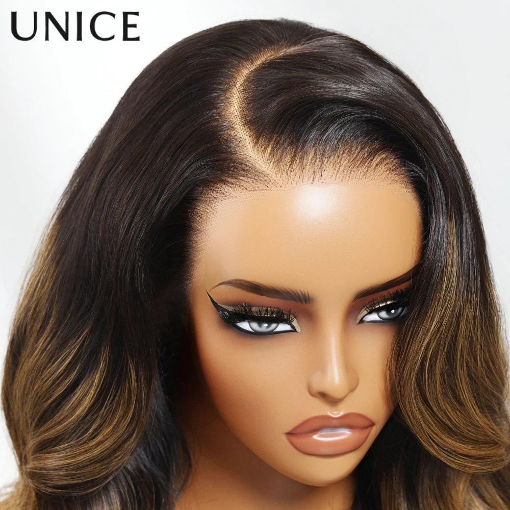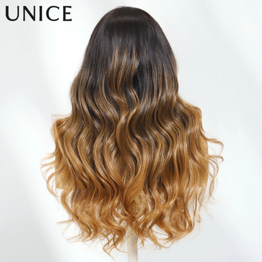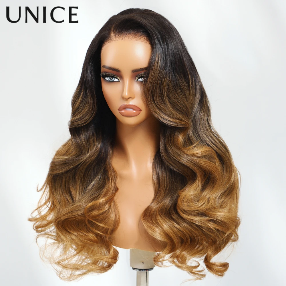 UNICE Cappuccino Ombre Loose Wave Wig With Invisible Drawstring 13x4 Pre Cut Pre Bleached Glueless Wig Human Hair Ready To Wear