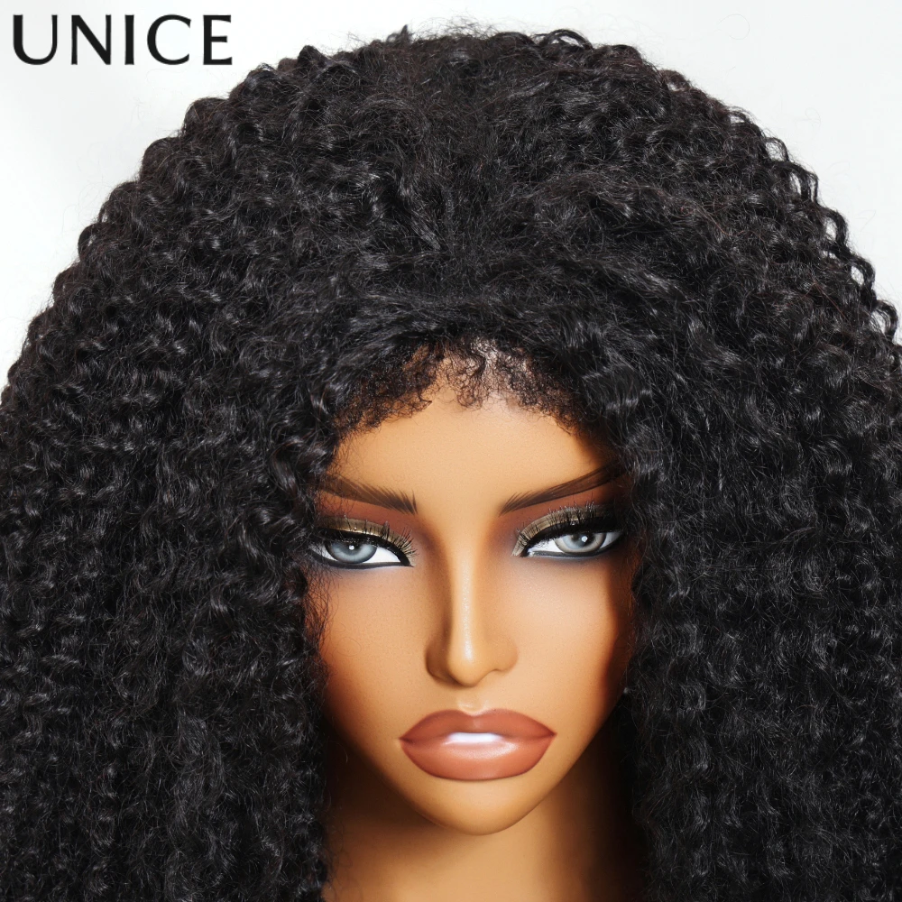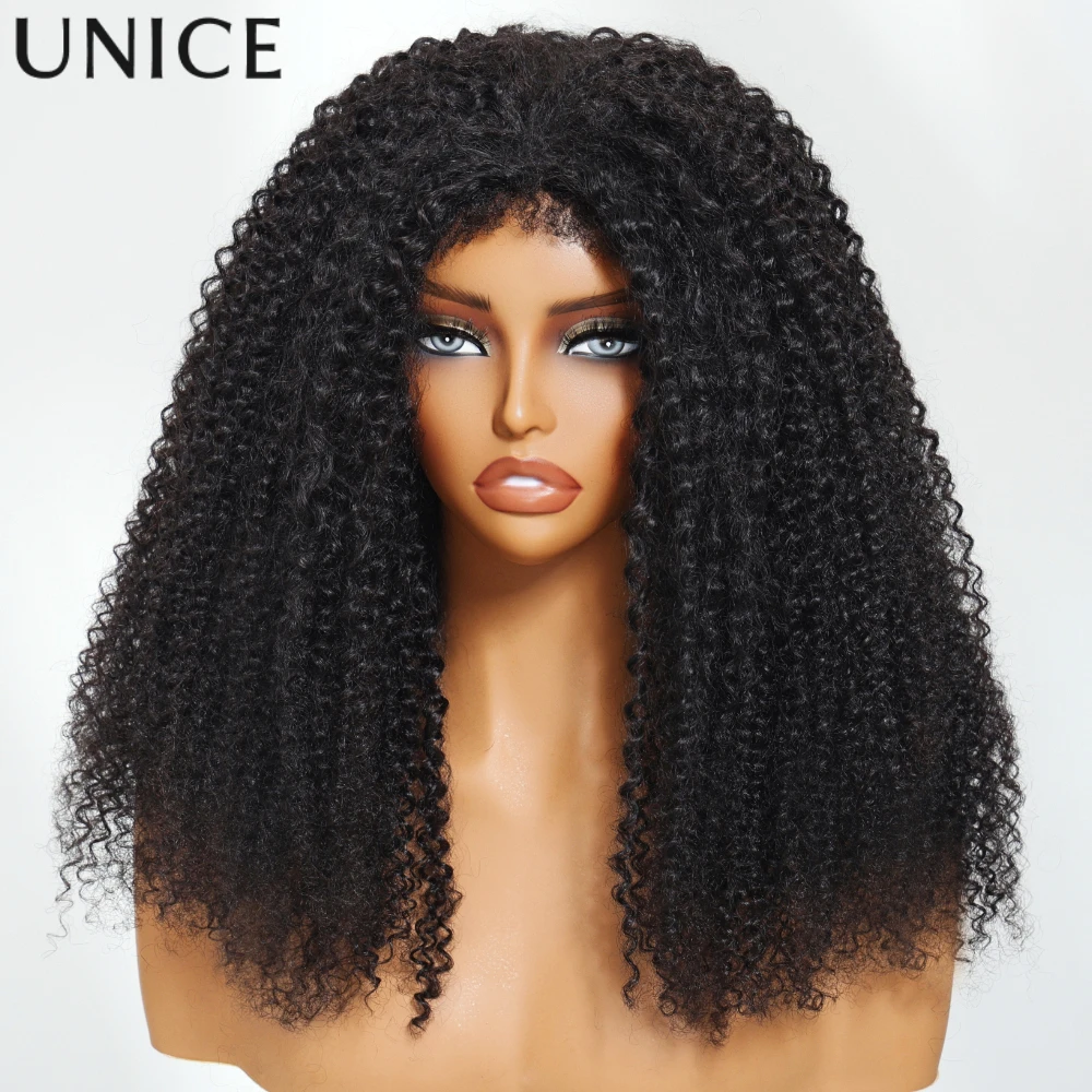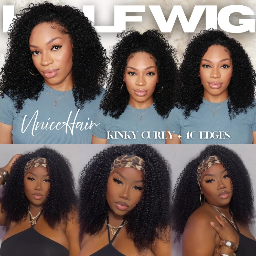 UNICE Hair Drawstring Kinky Curly Half Wig With 4C Edges Hairline Seamless Flip Over Human Hair Wig Beginner Friendly