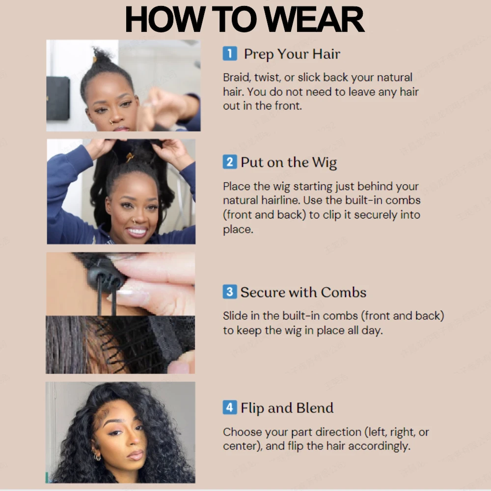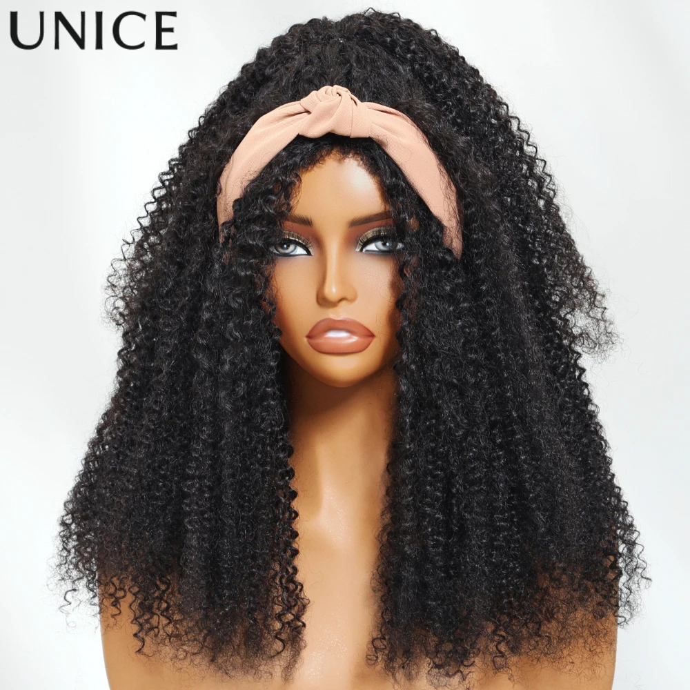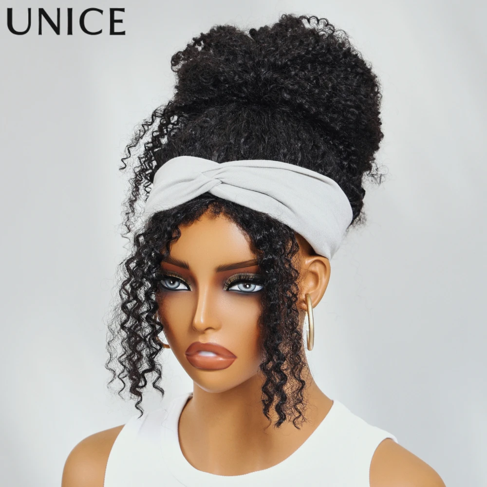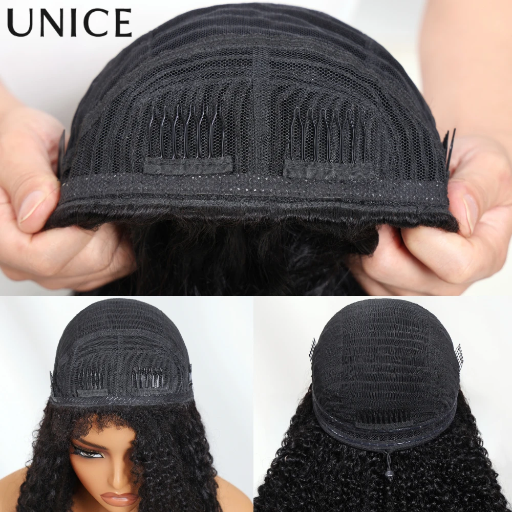UNICE Hair Drawstring Kinky Curly Half Wig With 4C Edges Hairline Seamless Flip Over Human Hair Wig Beginner Friendly